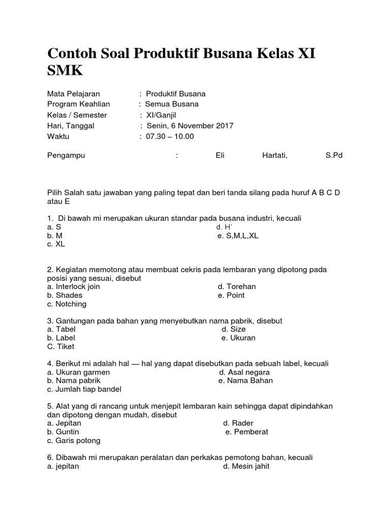 Soal Mulok Tata Busana Kelas Xi Genap from image.slidesharecdn.com Soal dan kunci jawaban tata busana. Check spelling or type a new query. We did not find results for: Maybe you would like to learn more about one of these?